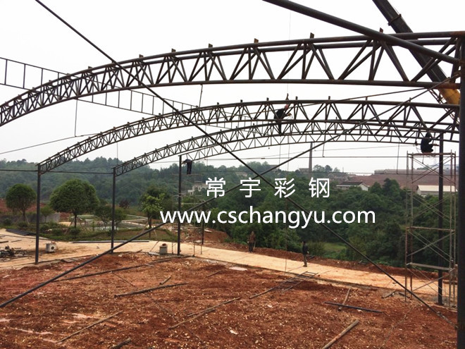 發(fā)布時間:2014-5-22來源:常宇彩鋼作者:常宇彩鋼瀏覽次數(shù):(0) 長沙鋼結構弧形棚廠房_異形棚廠房【設計,制作,安裝】_長沙縣白竹